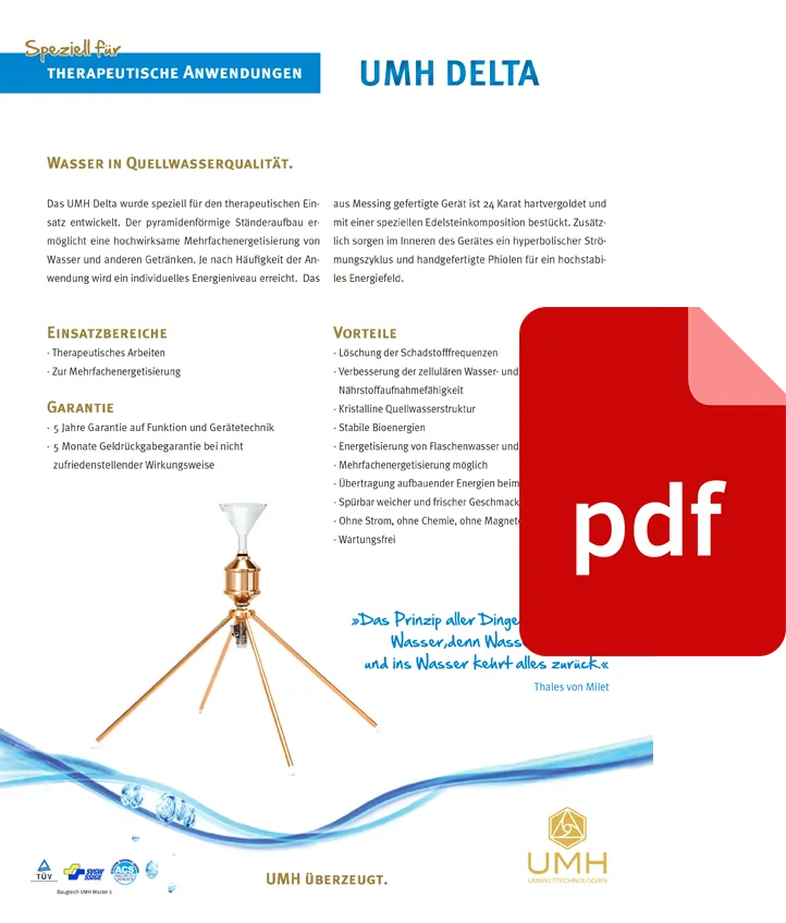 UMH Delta je posebno razvijen za terapijsku upotrebu. Njegov dizajn u obliku piramide omogućava visokoučinkovitu, višestruku energizaciju vode i ostalih napitaka. Zavisno od učestalosti korišćenja, postiže se individualni energetski nivo prilagođen potrebama korisnika.